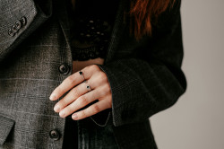 - Vælg én markant sten som fokuspunkt – for eksempel en ring eller et par øreringe – og lad resten af smykkerne være mere afdæmpede.